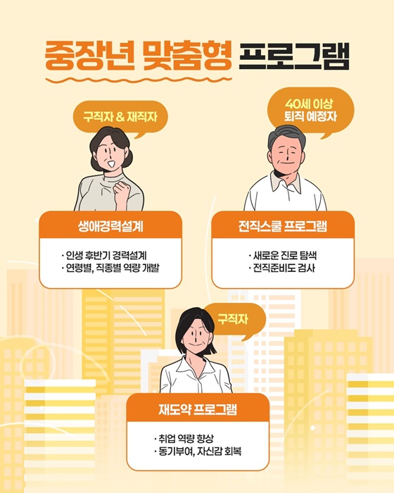 프로그램은 참여자의 현황에 따라 세분화되어 운영됩니다. 재직 중인 신중년을 위한 과정은 현재 맡은 업무와 장기적 커리어 목표를 연결해 중장기적인 경로를 설계하는 데 중점을 두고 있습니다. 반면 구직 희망자를 위한 과정은 기존의 직무 경험을 재평가해 전환 가능한 직무군을 찾아내고, 이력서·자기소개서 정비와 구직 전략 수립 같은 실무적 준비를 지원합니다.