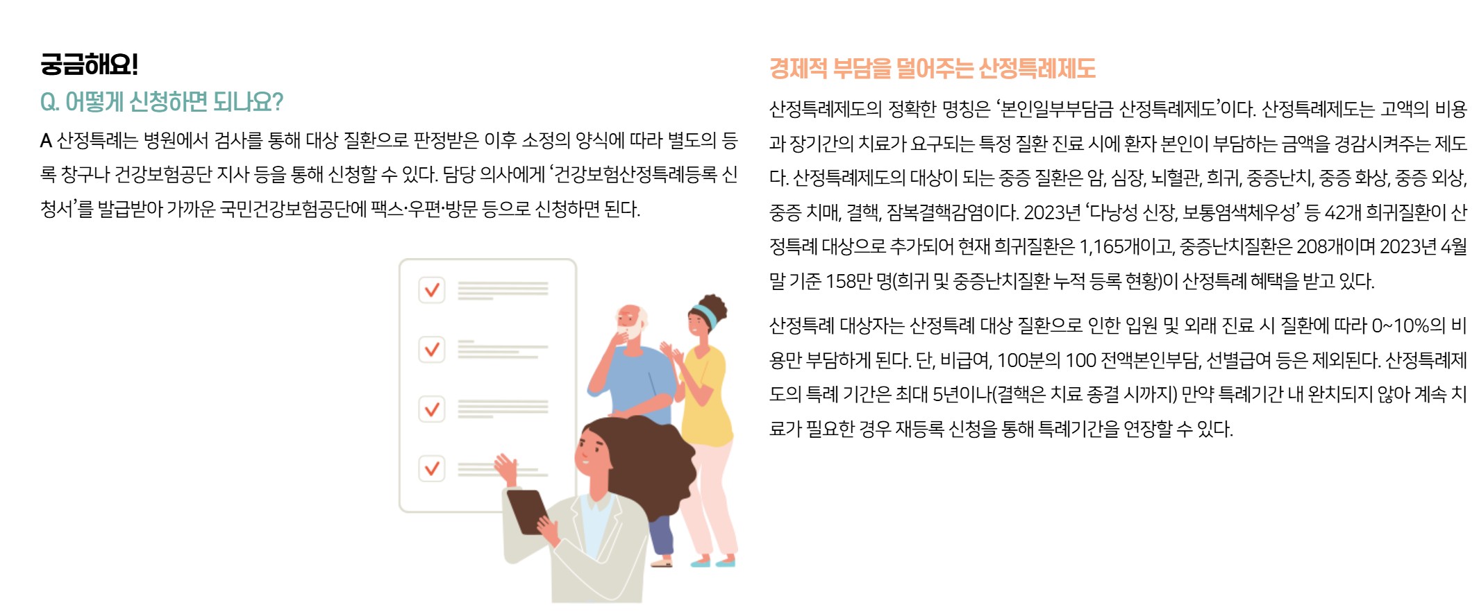 그럼에도 불구하고 산정특례 제도는 환자와 가족의 경제적 어려움을 완화하고, 장기간 치료를 이어갈 수 있도록 하는 기반을 마련하는 제도로 큰 의미를 지니고 있습니다.