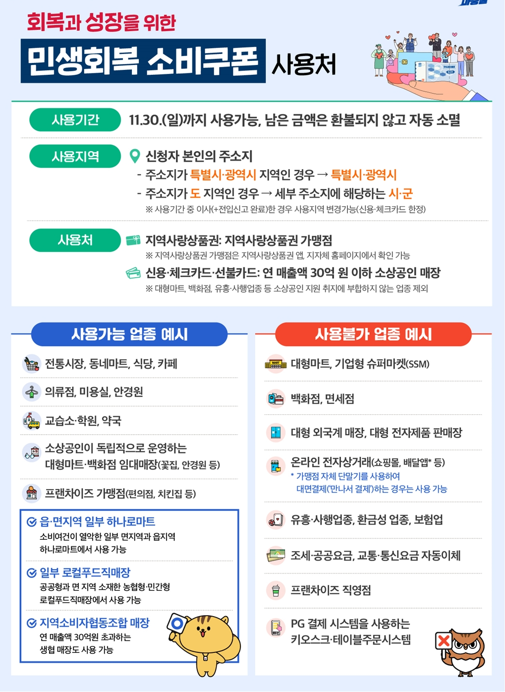 민생회복 소비쿠폰은 사용처가 제한되어 있으며, 주로 지역 내 지정된 상점, 전통시장, 중소형 매장에서 사용할 수 있습니다. 이러한 방식은 지원금이 지역 경제 안에서 선순환되도록 설계된 것입니다. 실제로 소상공인과 자영업자에게 매출 증가 효과를 줄 수 있으며, 전통시장의 소비를 촉진하는 긍정적 효과도 기대됩니다.